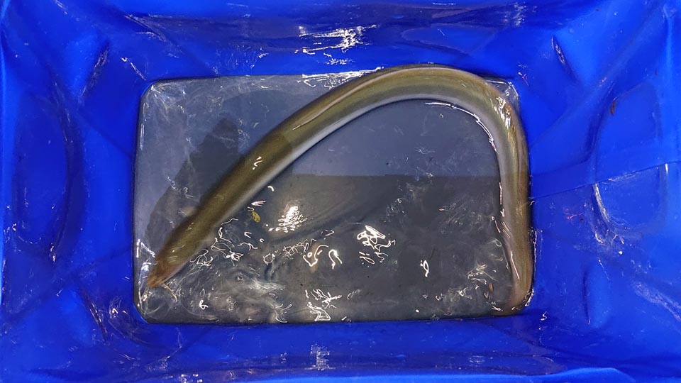 最初のアタリは開始1時間後だったかな、猛烈な引きなので、てっきりジャンボニゴイかと思ったらスーパージャンボウナギ!
