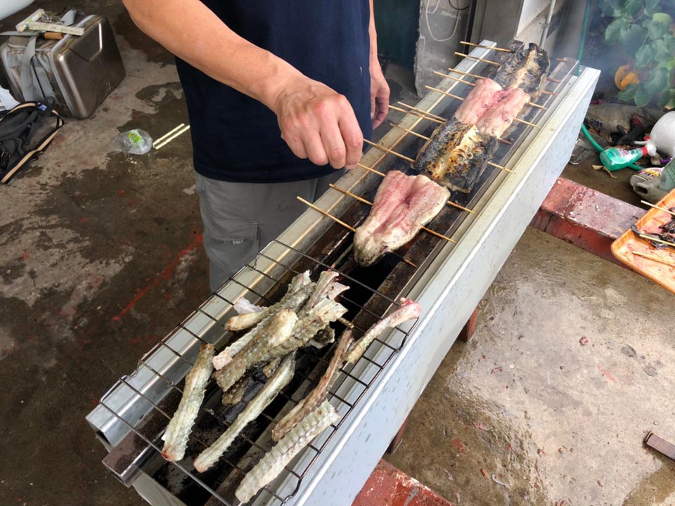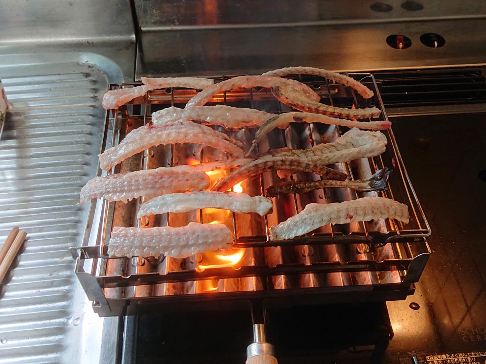 アチキは細々したところを担当しまして、頭やら中骨を網焼き。