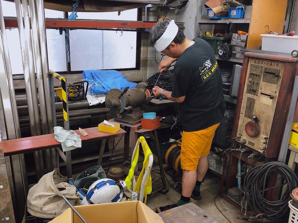 目打ちを作るのを忘れて、料理人T中氏がスタンバってから慌てて製作中の図(ワハハー)