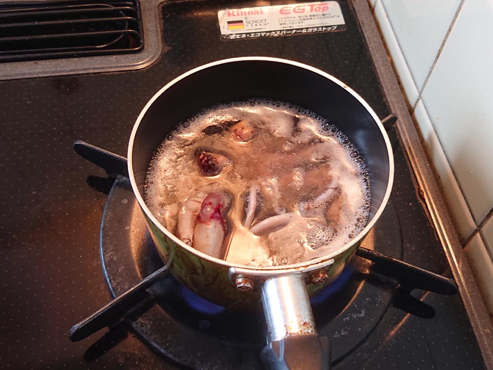 肝を茹でてるところです。