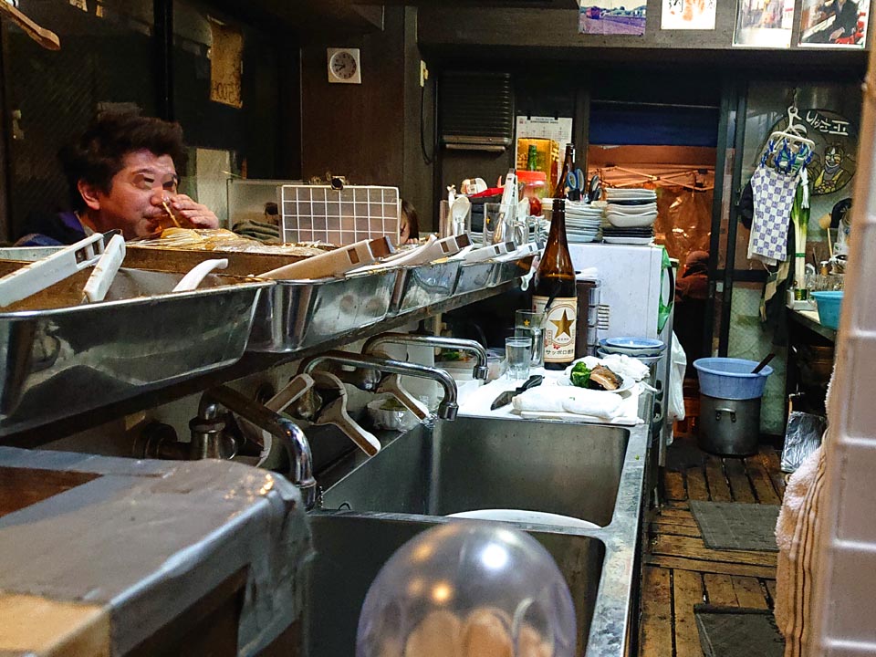 で、正ちゃんに戻り、裏口を覗いてみると、カウンター席が空いてたので滑り込み♪
