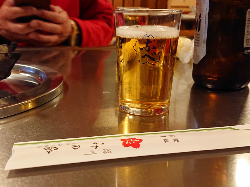 ここは生ビールを置いてなくて、アサヒの中瓶。