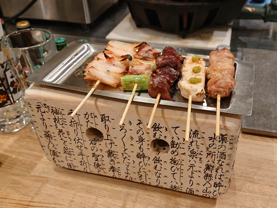 焼鳥五本セットを頼んだら、飛騨コンロに乗っかってきました。