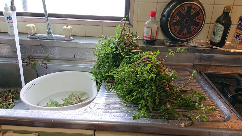 朝から菜摘みへ出掛けた土曜日、帰宅後ひと眠りしてからお花見宴会の準備を。