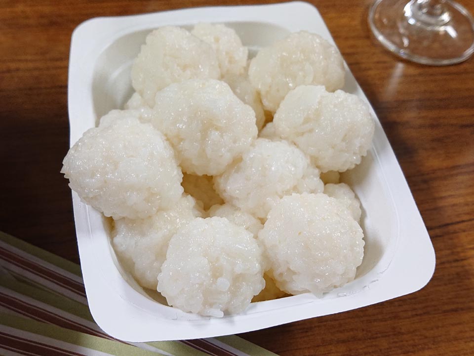 きりたんぽが調達出来んかったので、佐藤のご飯をチンして潰してだまこもち。