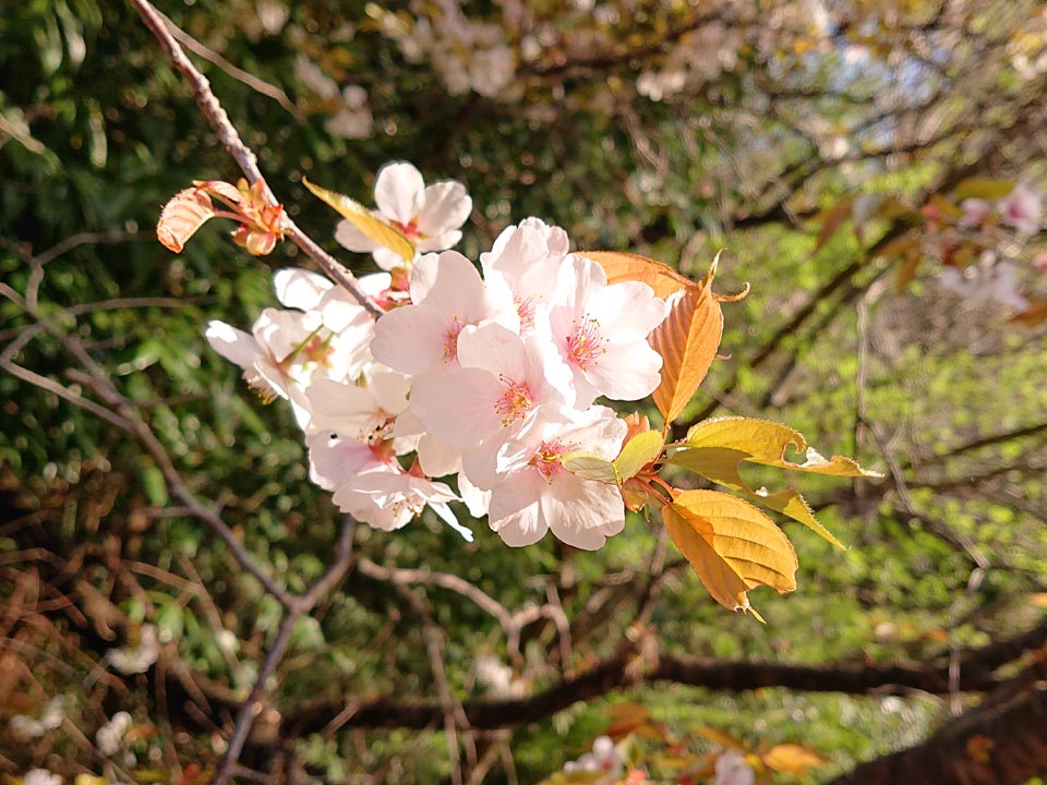 山桜、街で見るとちっとも綺麗に見えんけど、山で見れば不思議と綺麗。