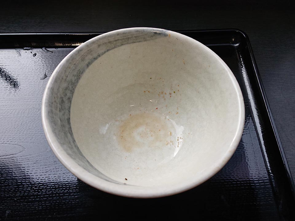 瀬戸物のどんぶりはおつゆで染まってないタイプ。