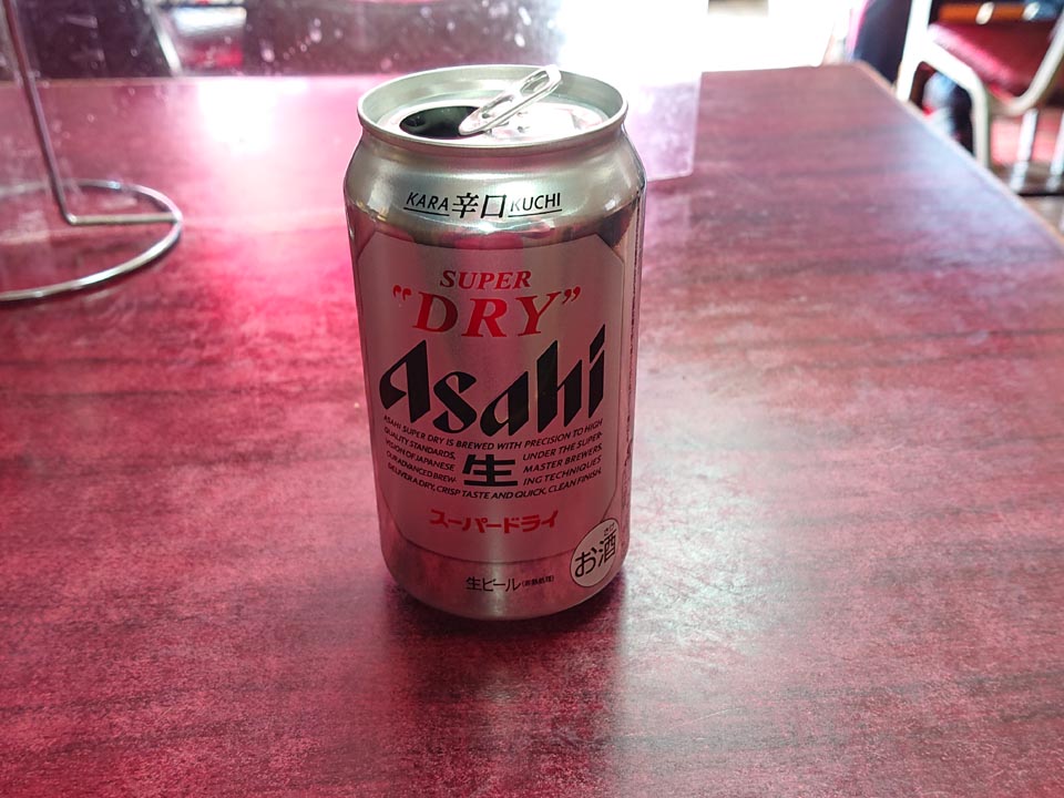 指定席に座り、まずは缶ビール。