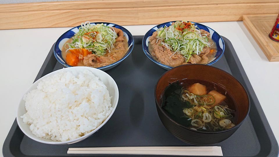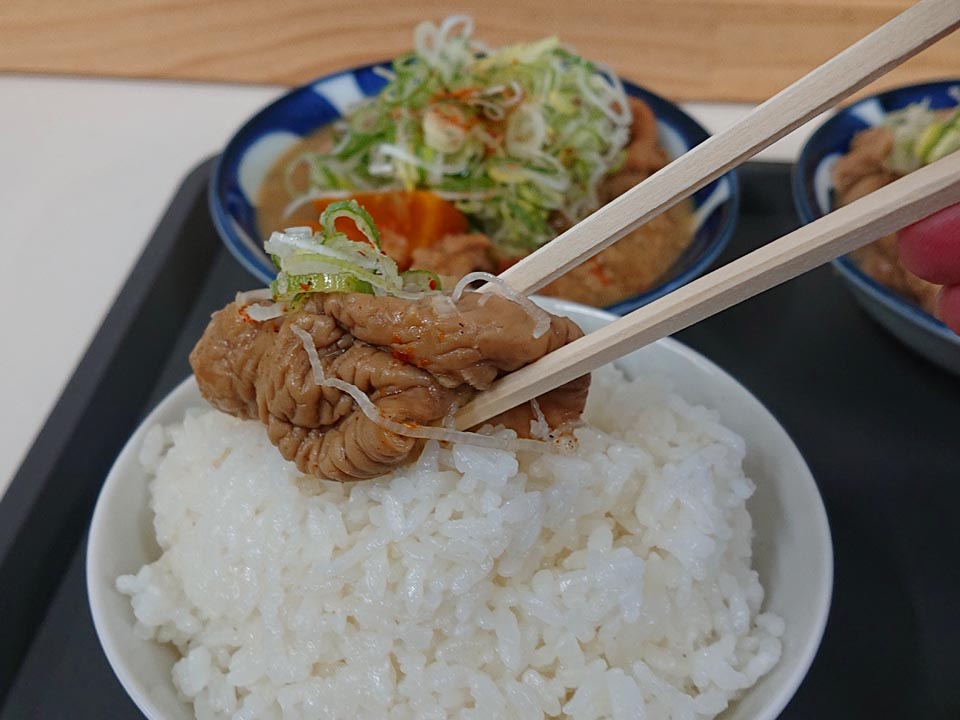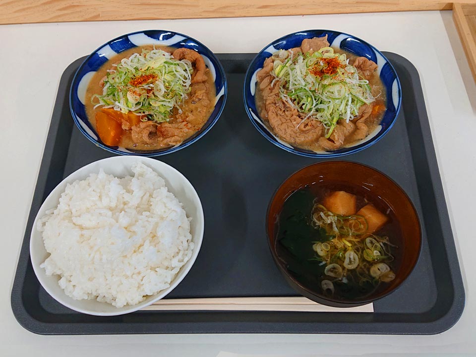 味噌味と醤油味のもつ煮が楽しめる欲張り仕様。