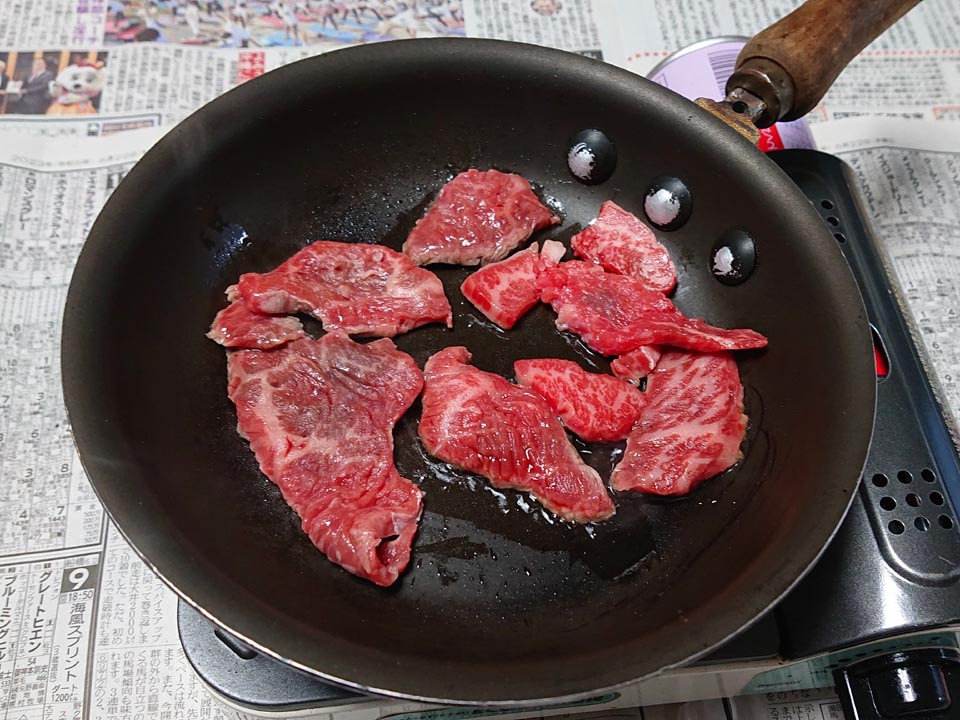 ご明察。 和牛はお安い切り落としの見切品ケチケチ仕様♪