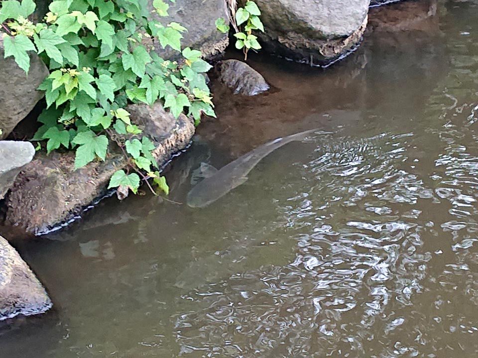 ここ1週間ほど前から、早朝お散歩コースにボラ君が。