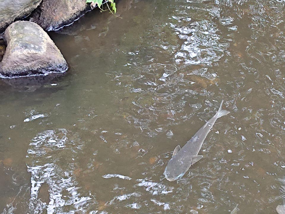 お散歩コースのボラ君は元気です。