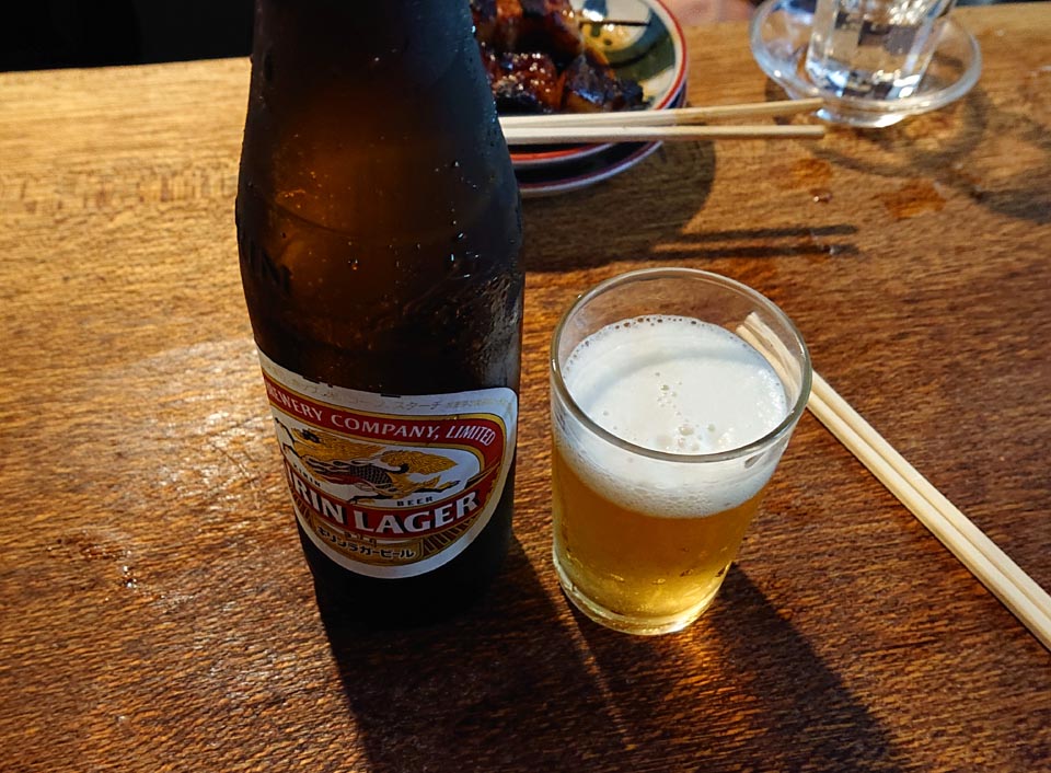 鏡前席に通され、まずはビールで乾杯スタート♪