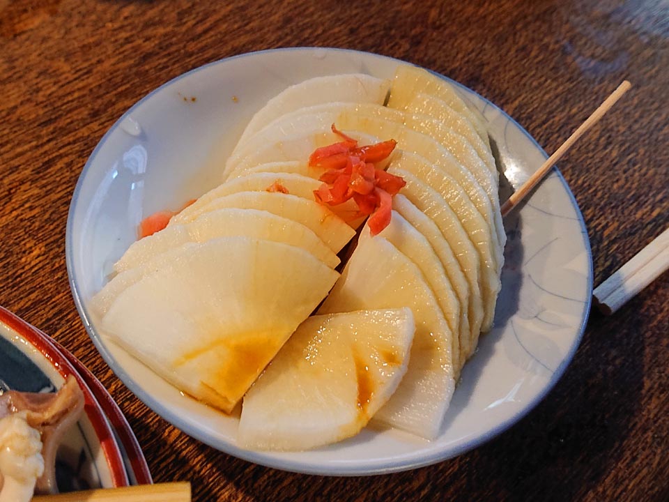 お新香頼んだら大根だけになってた。