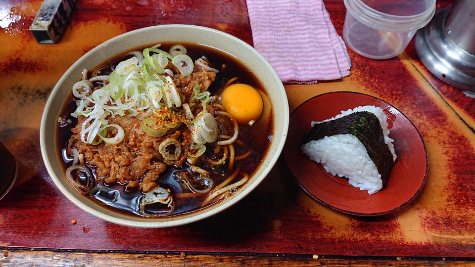 そば・あみ天・生卵・おにぎり、最後に大きな声でハッキリと、『つゆ多めで』