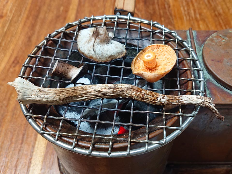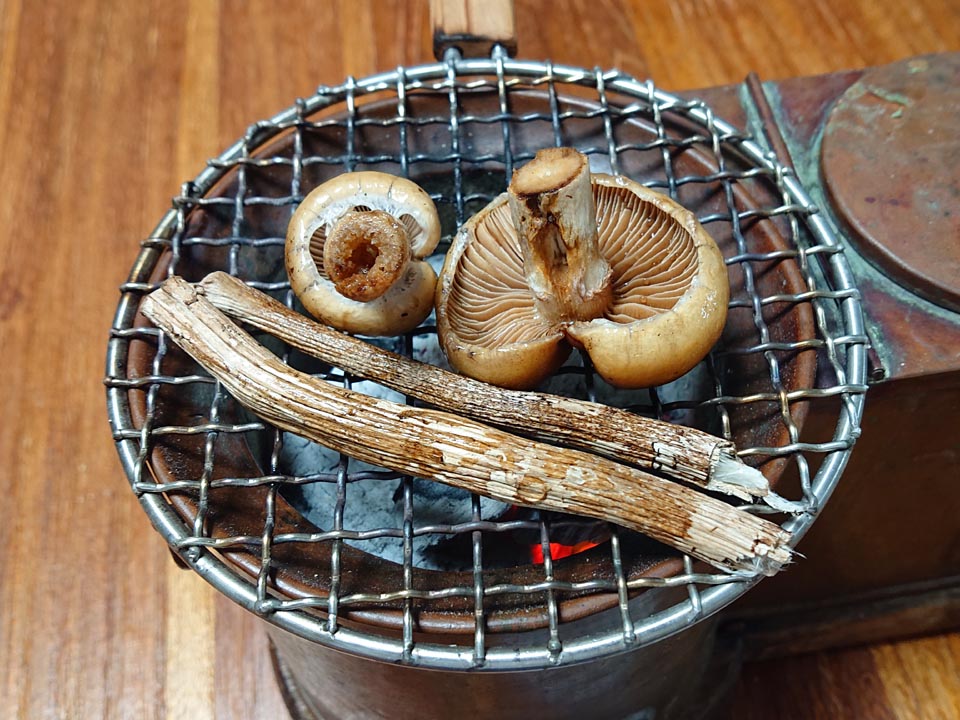 前回のきのこ採り遠征の獲物を再び銅壷にて。