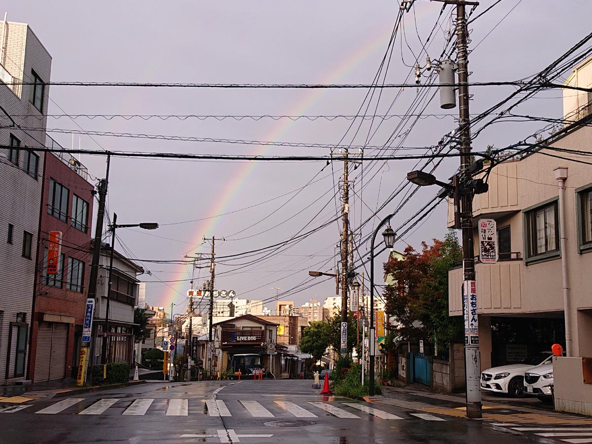 帰り道、谷中の夕焼け段々前には綺麗な虹が掛かってたね。