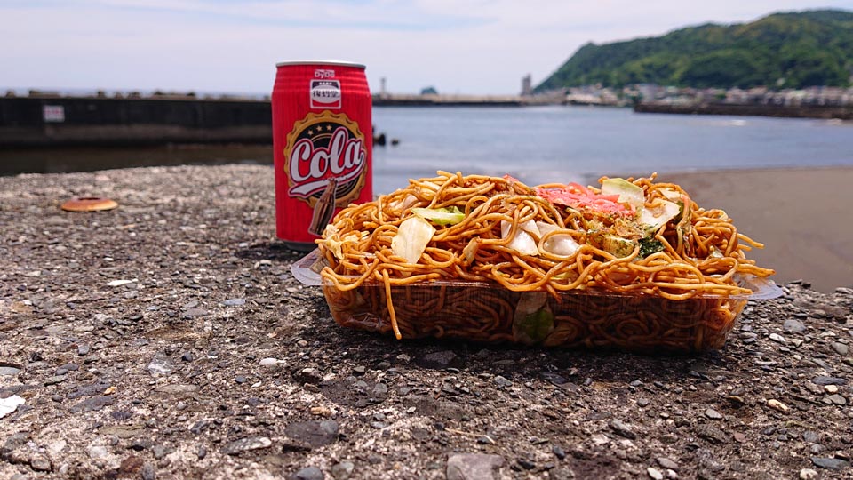 ここで長閑な景色を眺めながら食う伊東温泉焼そば&コーラが、じつにウマいのです。
