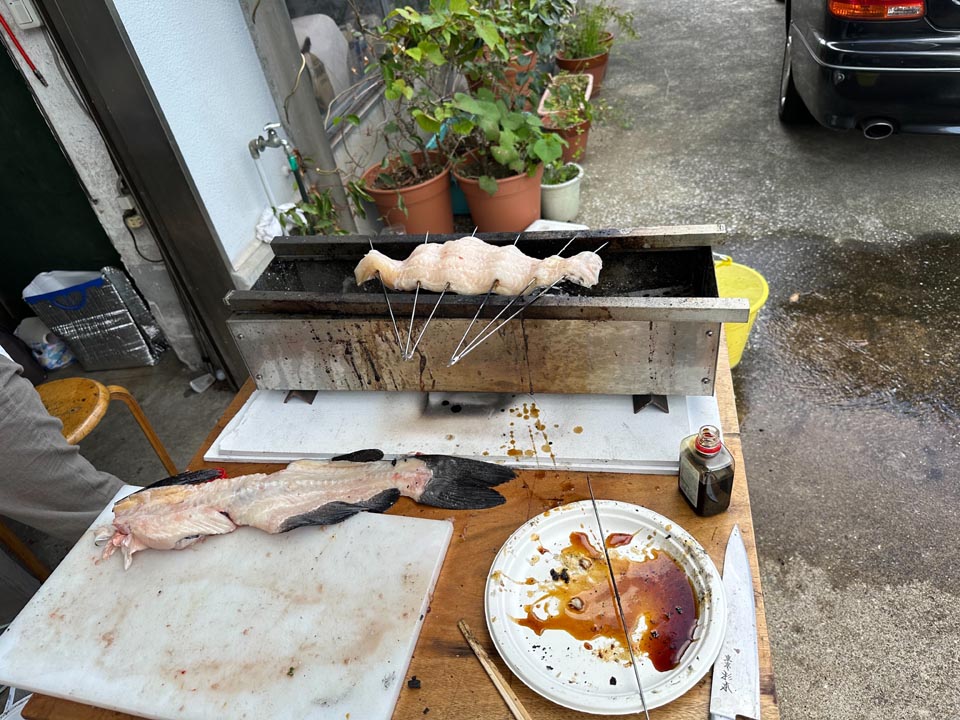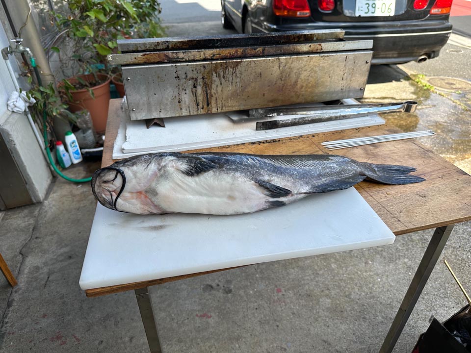 8月に釣り上げ、磯ゴキブリ氏の所の大型冷凍庫で保存してもらってた、アメナマを捌きます。