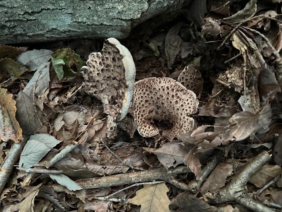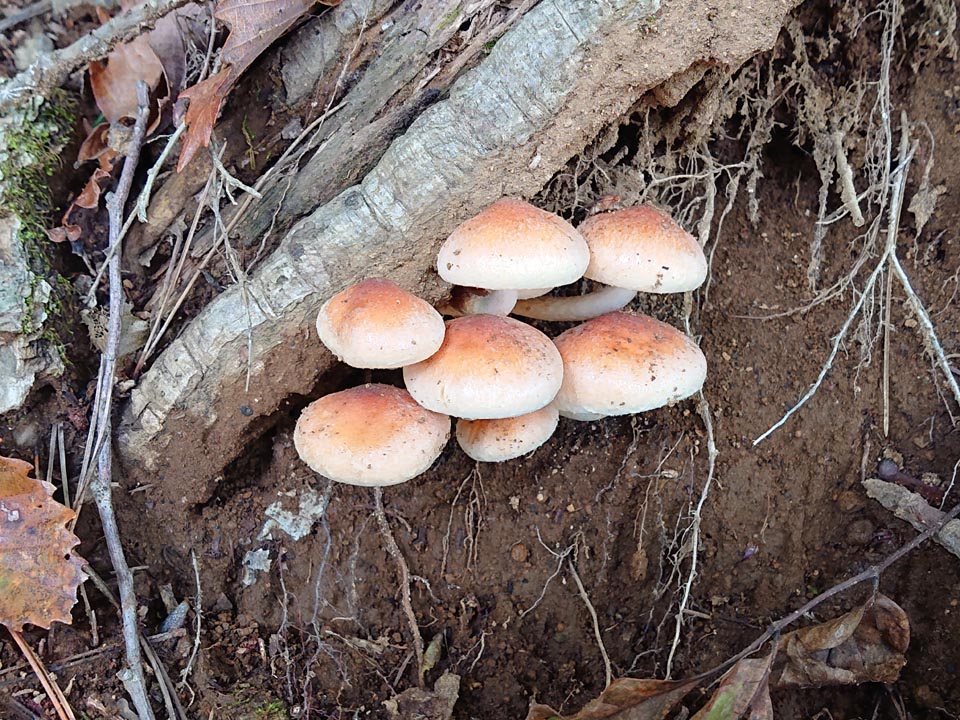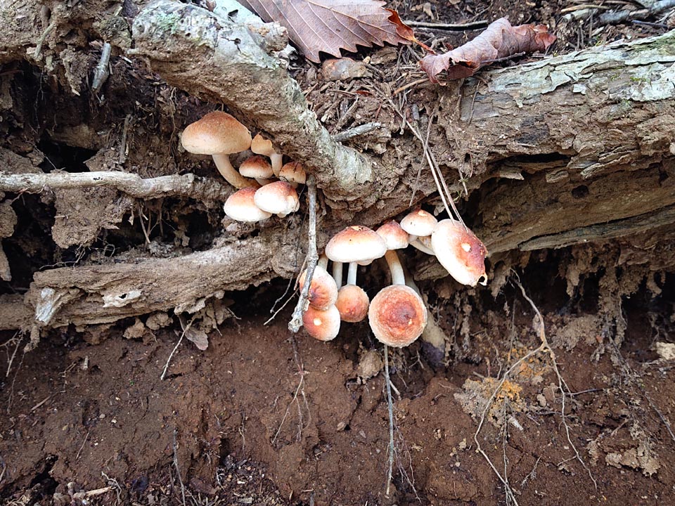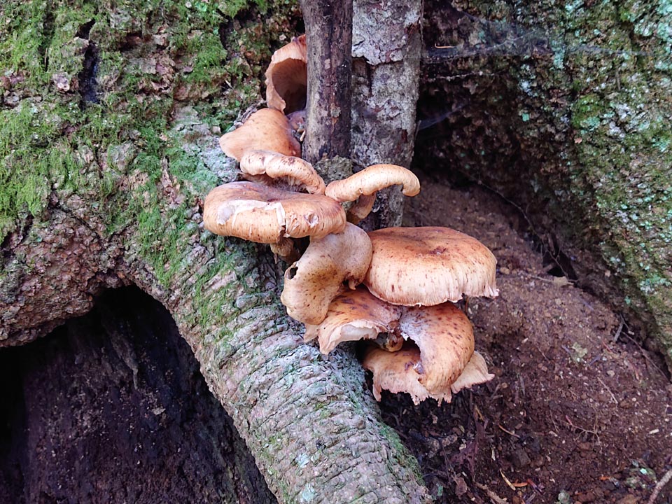 途中チョッチュル気になる尾根に下りてみたら、ザンネンナラタケ。