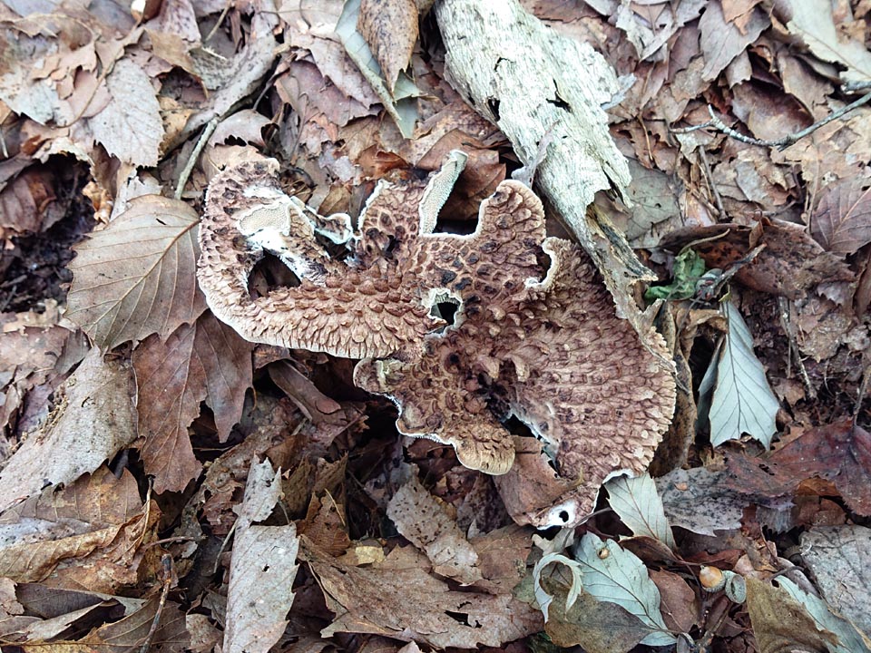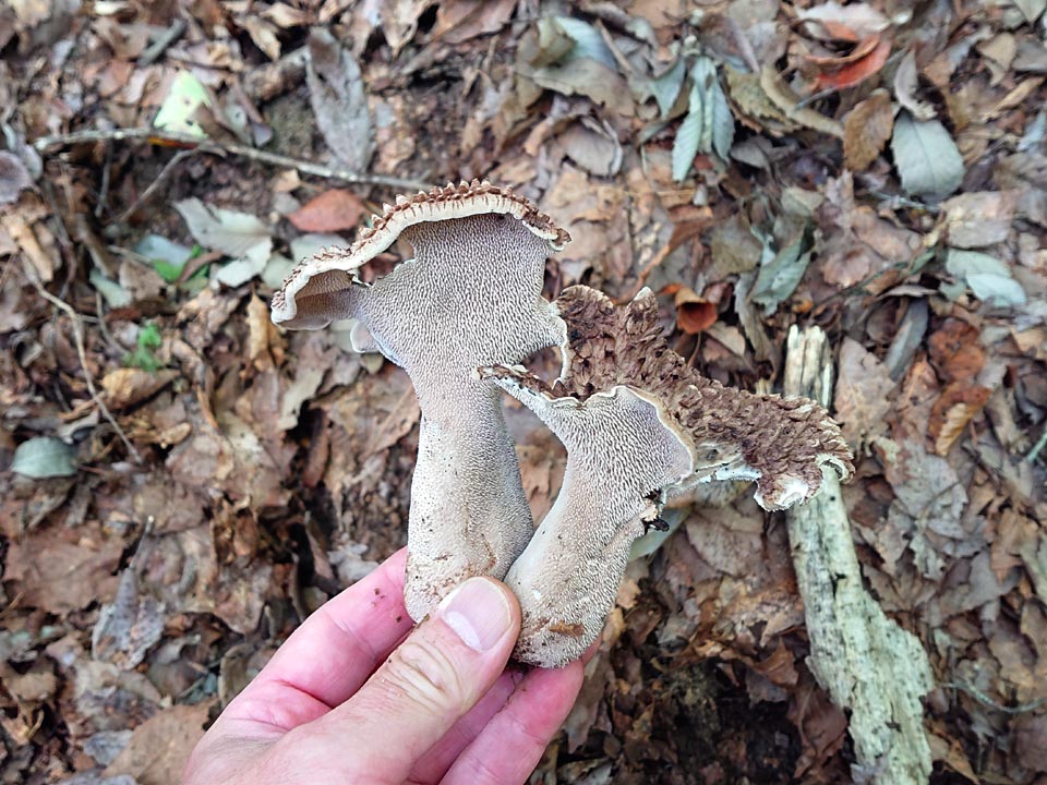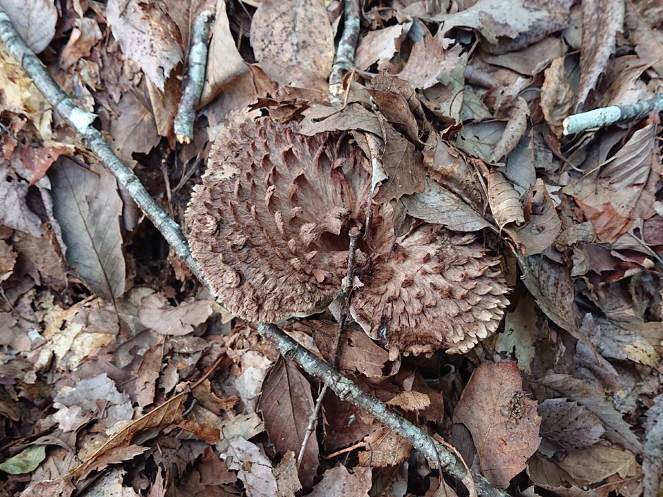 この尾根を一旦切り上げ、車まで戻ると、I東氏がクリタケをみっけた。