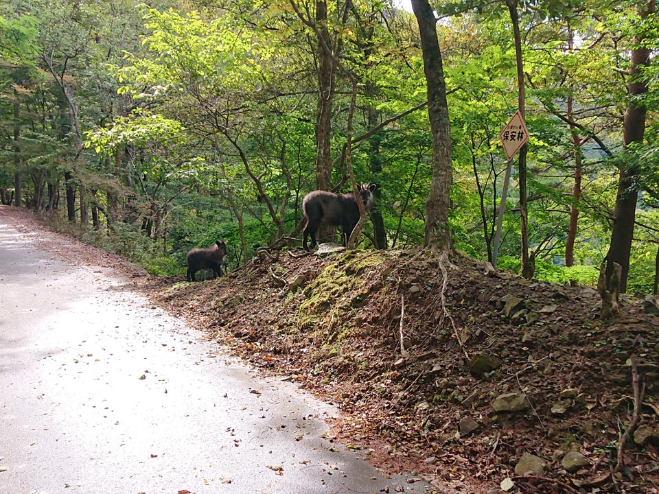 峠を越えると、ニホンカモシカの親子が出て来たyo!