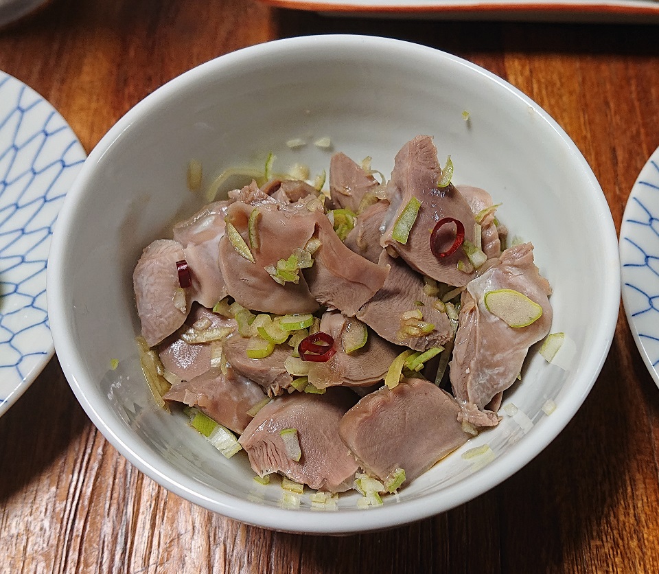 残ってた砂肝を使い、鳥房まねっこおかず、鳥南蛮。