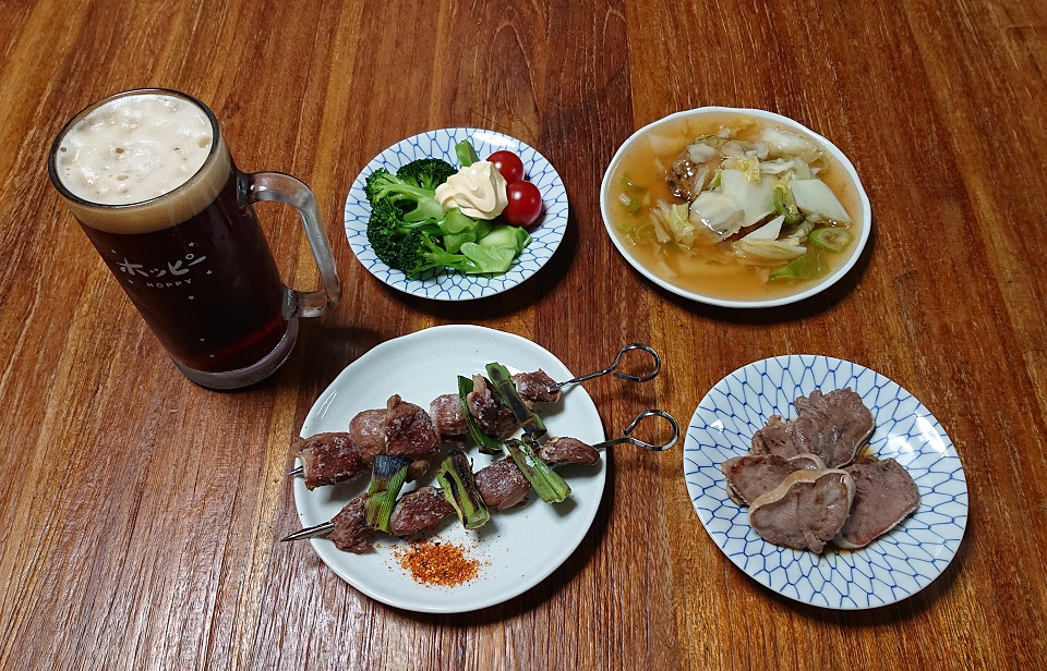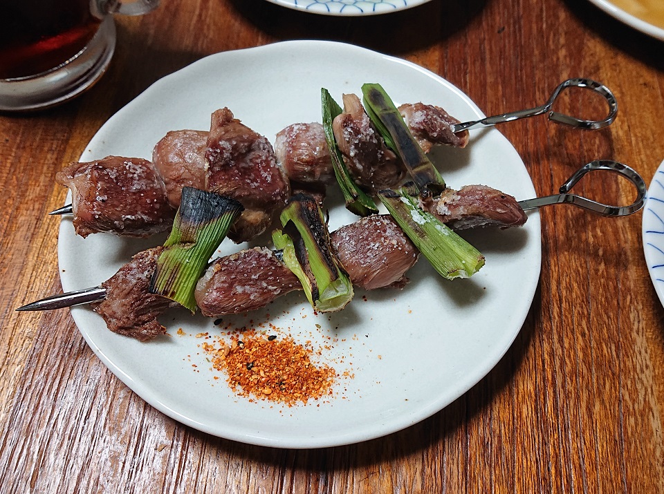 アヒージョで食いきれんかった砂肝を串焼きで。