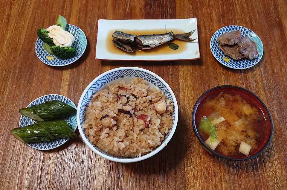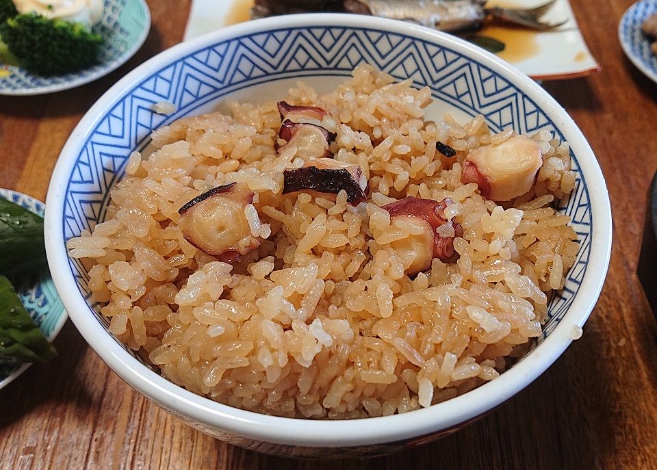 先日の蛸梅唐辛子の残りで蛸飯ウマし。