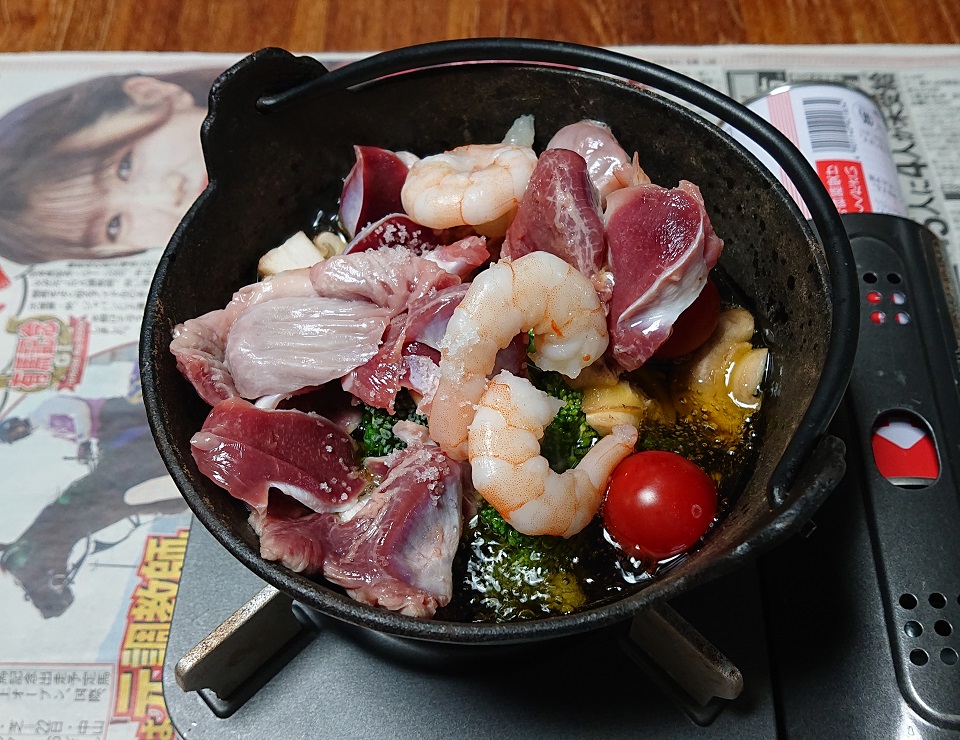久しぶりにアヒージョで宅打ち。