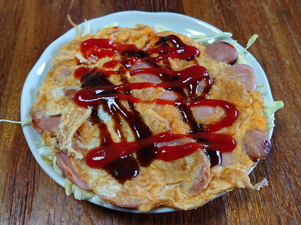 平井の名店豊田屋の真似っこおかずでウインナー玉子焼きで定食。