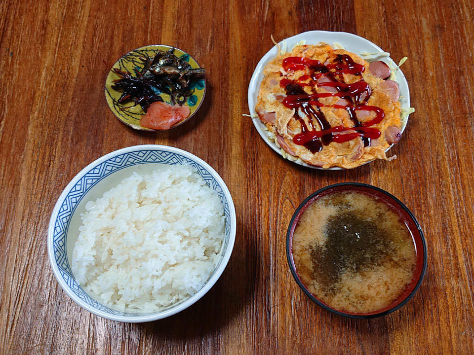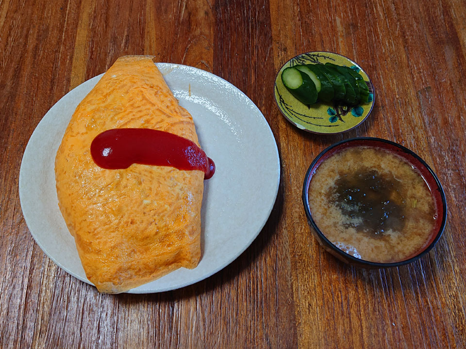 玉子は1.5個で充分だから、残りの0.5個分の玉子はこんだから味噌汁に入れよう。