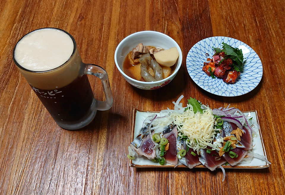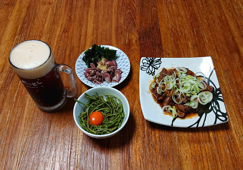 ジャンレバとホタルイカとアケビ蕎麦で宅打ち。