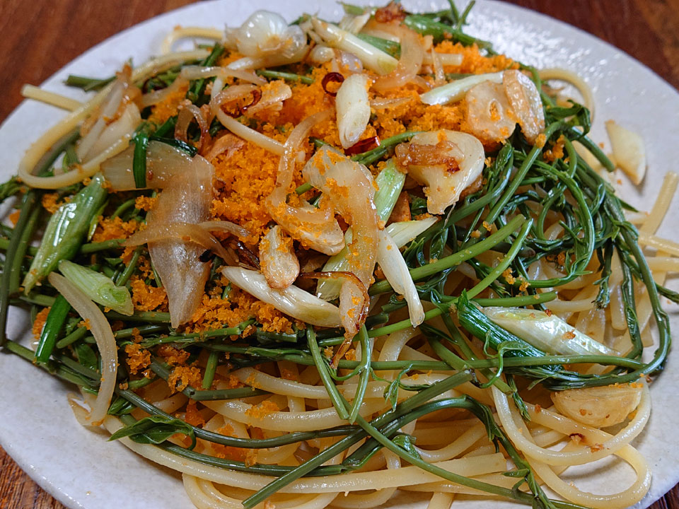 今年三回目になる、スパゲッティ ボッタルガ ジェルモリオ エルバ チッポリーナ アーリオ オーリオ ペペロンチーノ。
