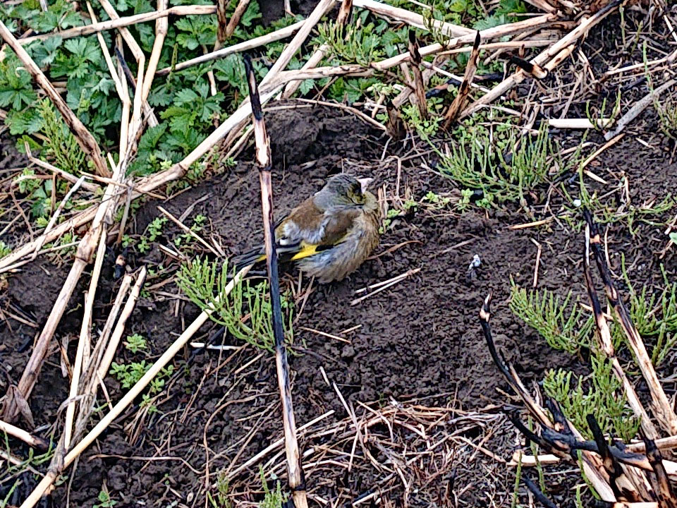 土筆ポイントにて、巣立ち直後のジョウビタキ?マヒワ?