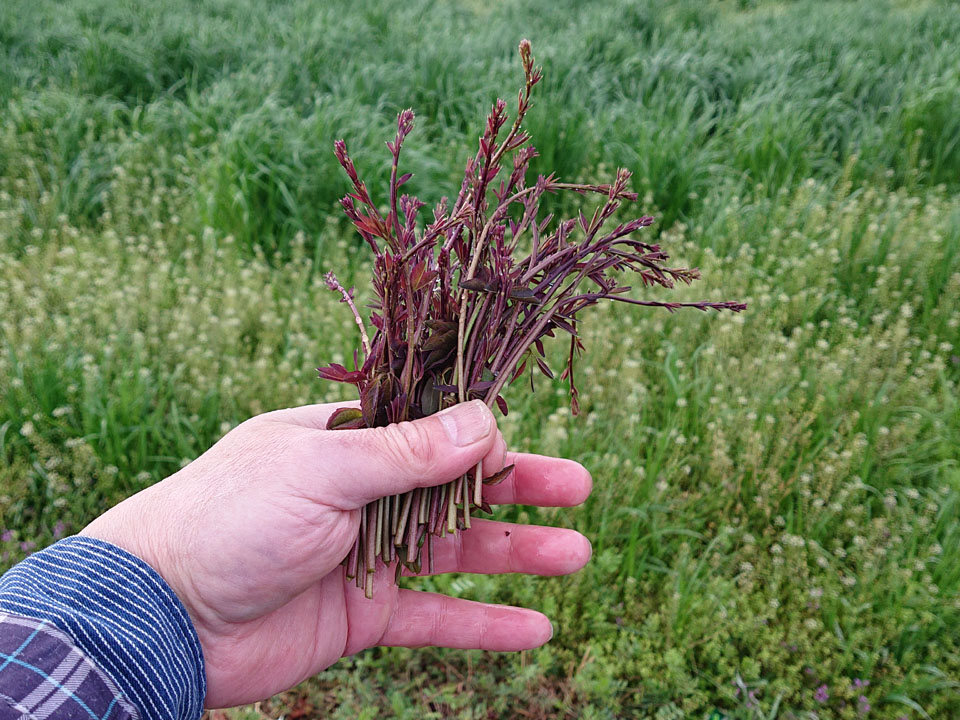 いつものポイントにて、アケビの芽を摘んで・・・・