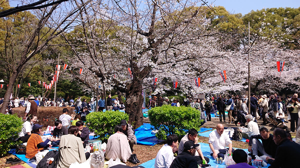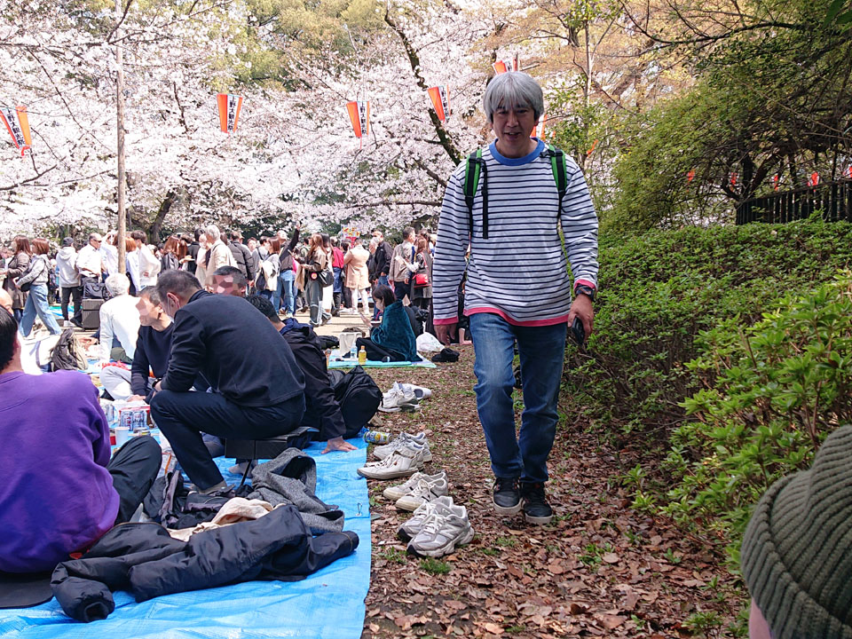 公園内をズンドコ歩き、いつものエリアに到着、隙間をみっけて無事場所確保でパチリ♪