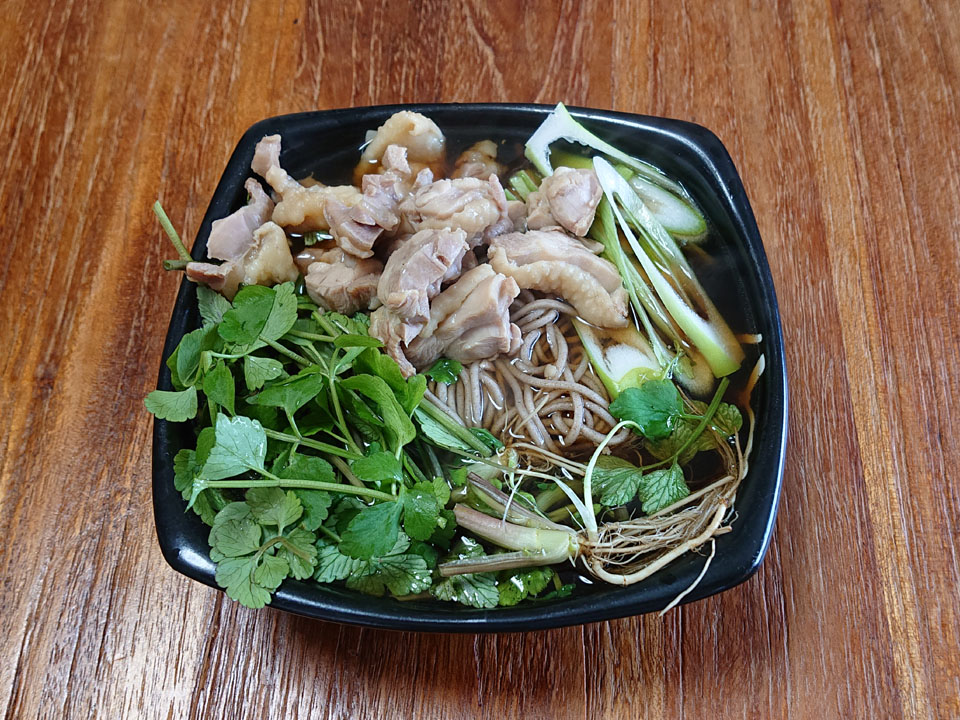 根付きで頂いたので、チョッチュル良い鶏腿肉を買って来て、芹かしわ蕎麦に仕立てました。