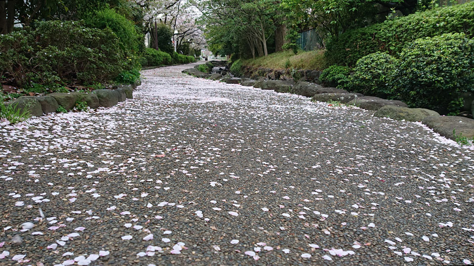 上野恩賜公園の桜に遅れる事5~6日程で満開を迎えた、お散歩コースの桜が昨夜の嵐で大分散ったね。
