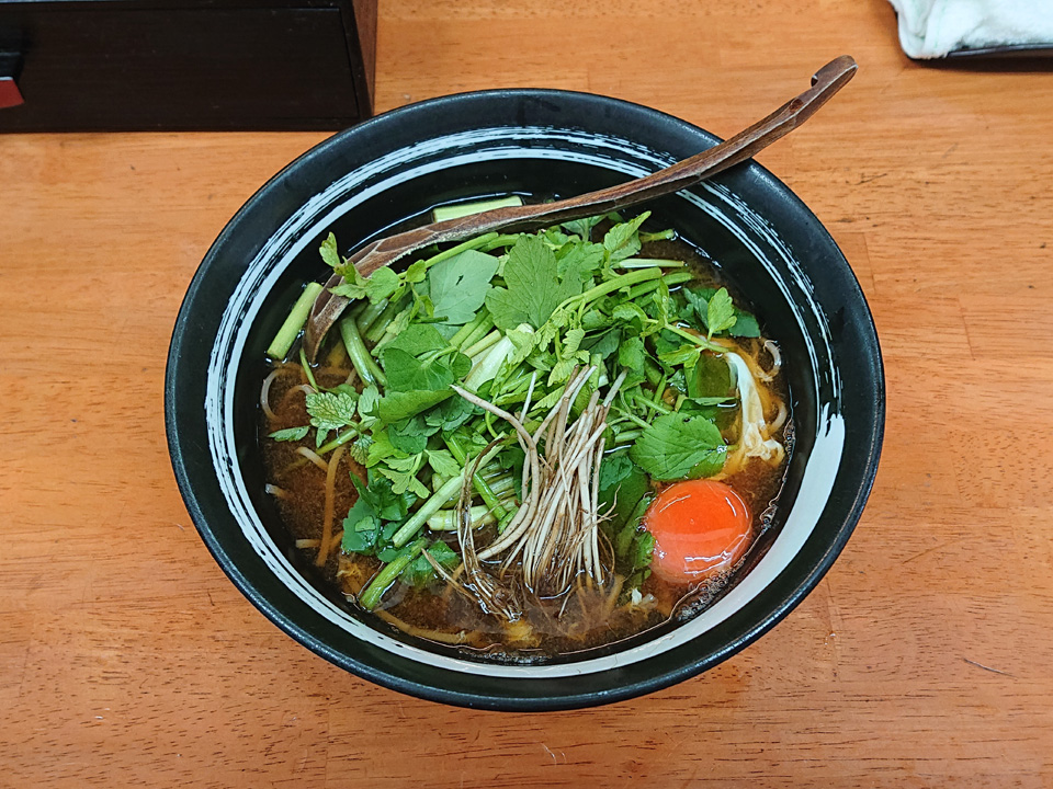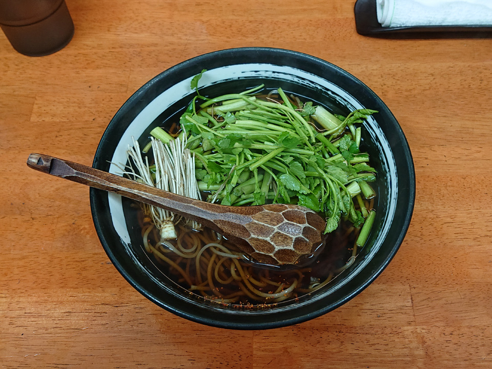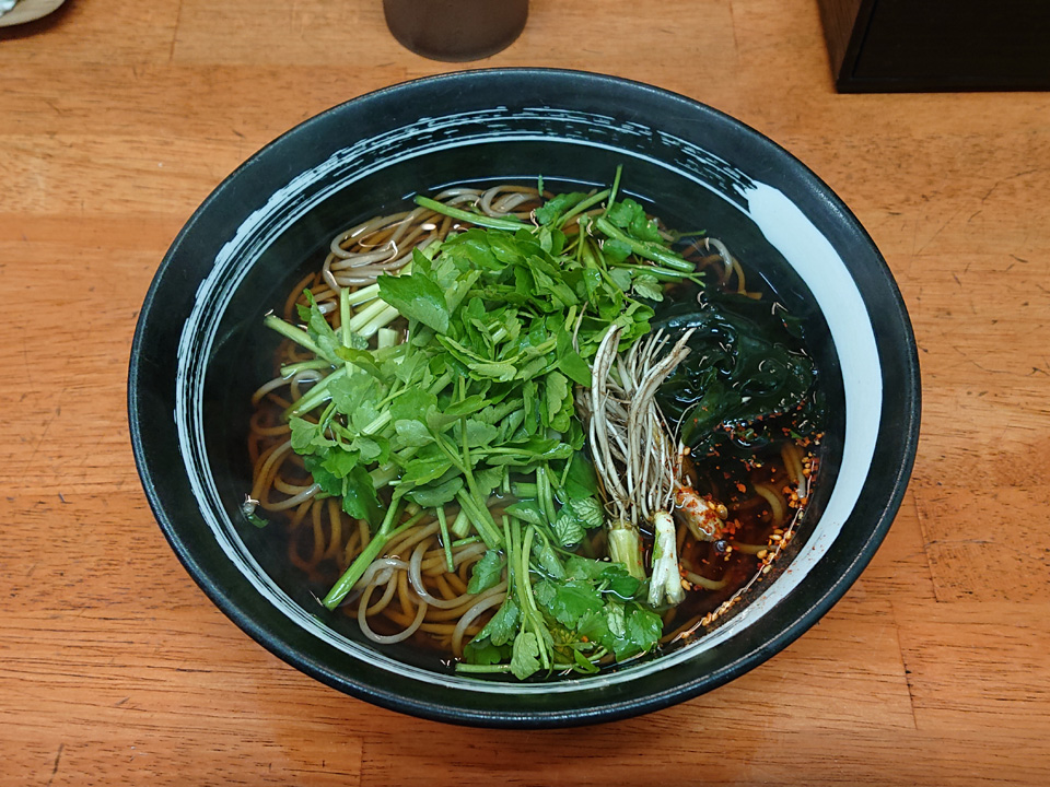 3月1日はつぐみ食堂で芹蕎麦・生卵。