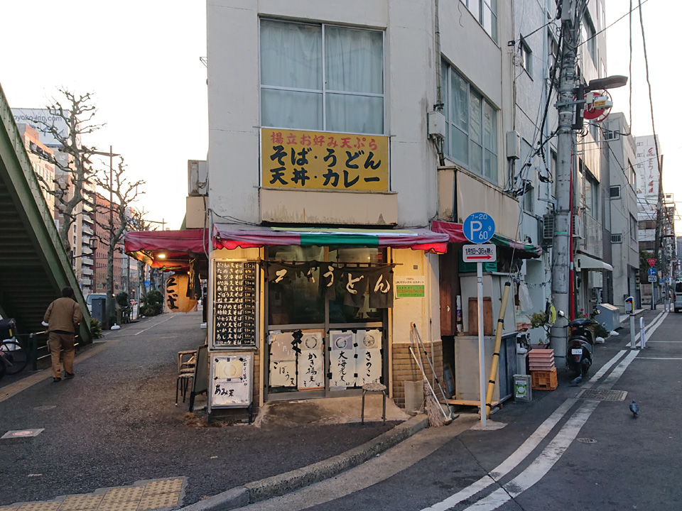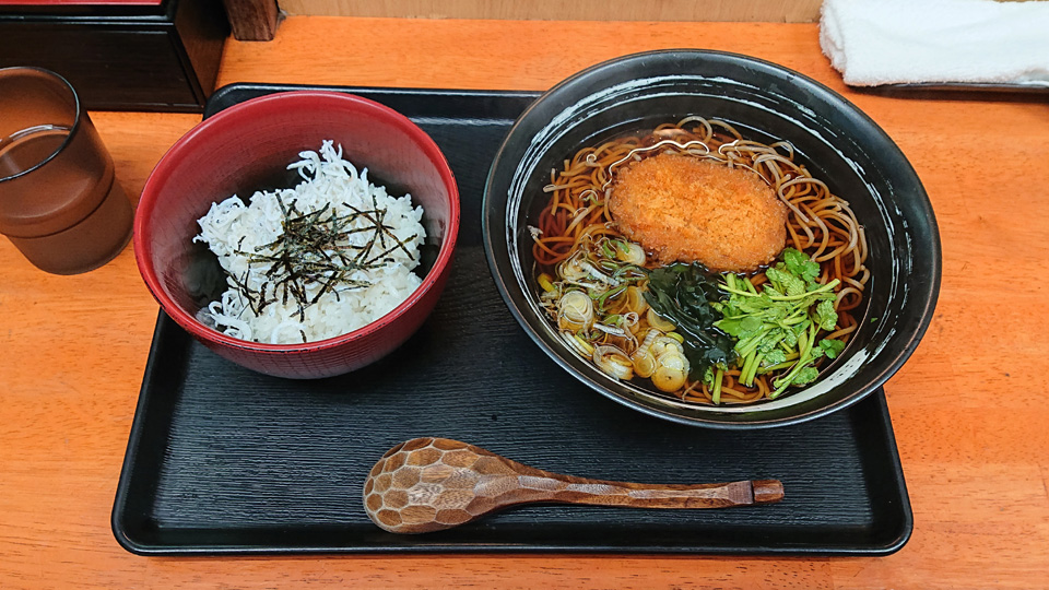 3月7日は東神田そば千にて、アミ天そば・コロッケ・生卵・おにぎり・つゆ多めでお願いします。