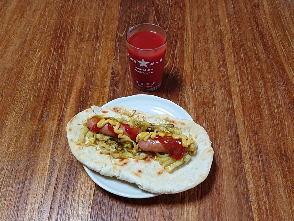 駄菓子菓子・・・パンを切らしてたのを忘れたので、急遽ナン的なヤツを焼きました(ワハハー)